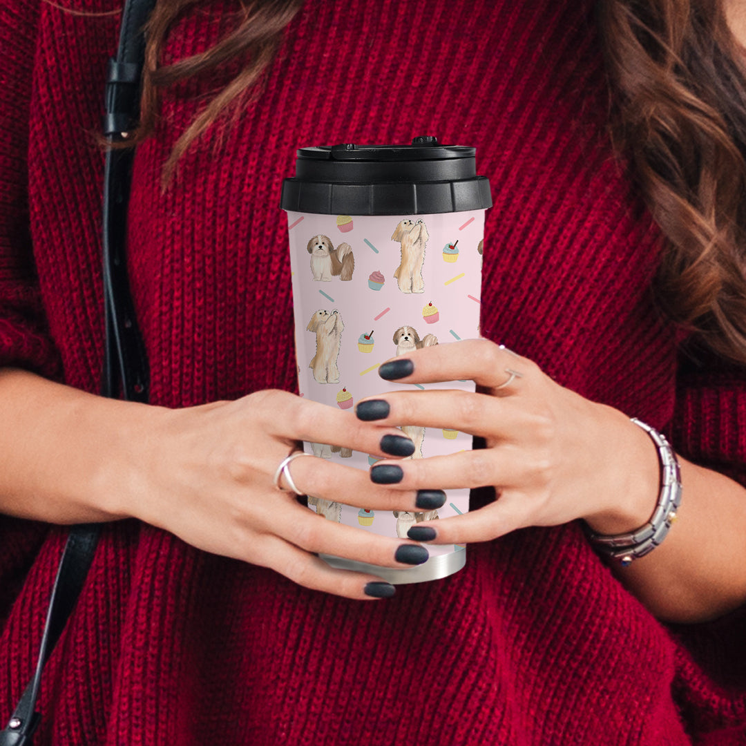 Start your morning with a smile with this cute Lhasa Apso travel mug! A perfect accessory for your morning commute, it also makes a wonderful gift for any dog lover. Refresh yourself while celebrating furry friends!