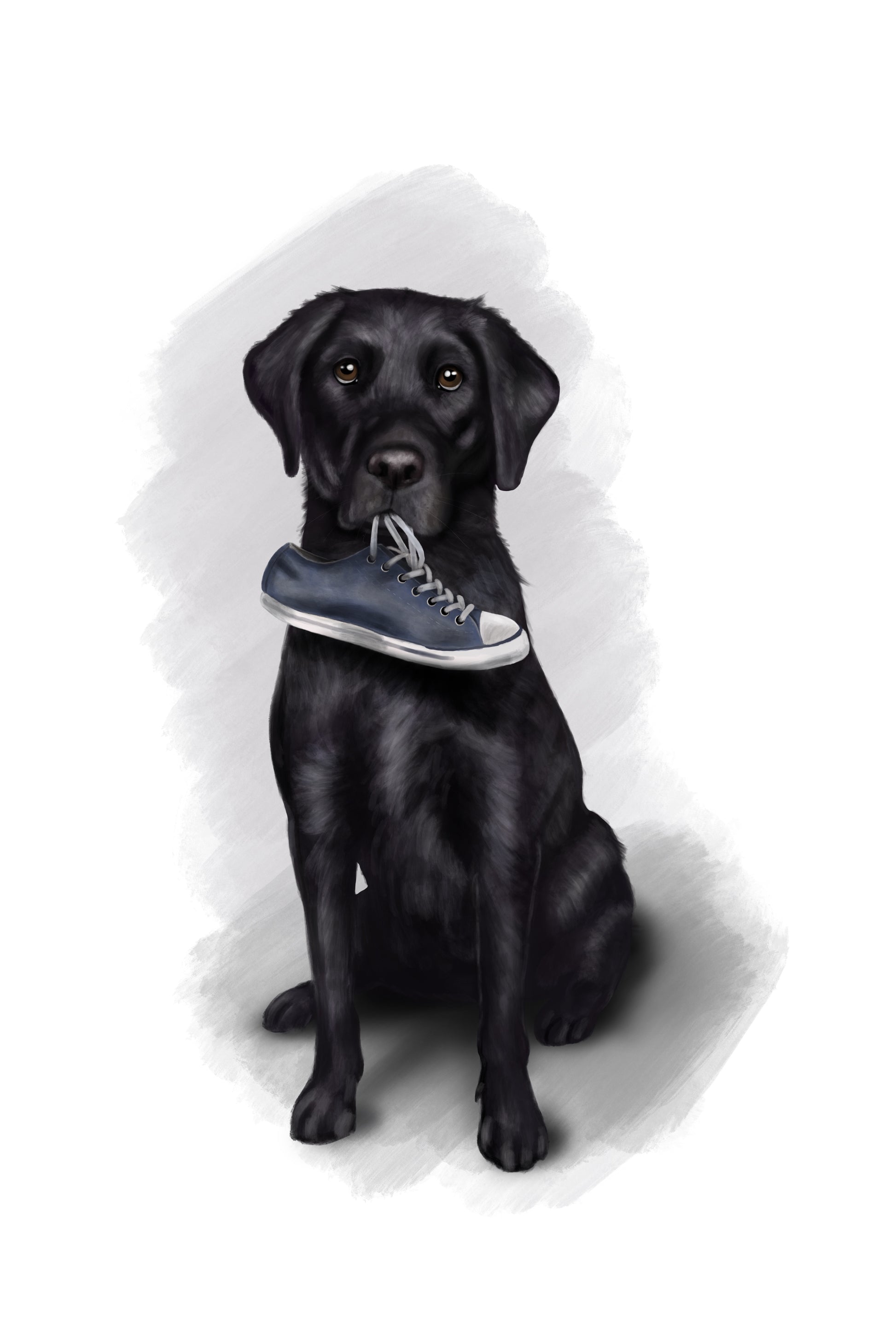 Personalised Black Labrador "I've got your shoe" - Mounted